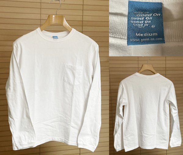 - ★【並品 希少 定番 USA製ファブリック 日本製 国内正規品】 GOOD ON グッドオン コットン 無地 ポケット 長袖 Tシャツ M ホワイト