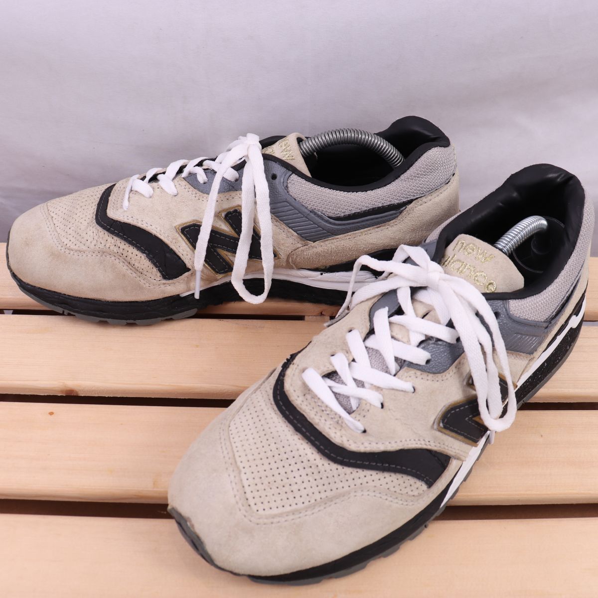 > z369【997.5】ニューバランス US9.5 27.5cm/ライトベージュ ベージュ 黒 グレー newbalance メンズ スニーカー 中古