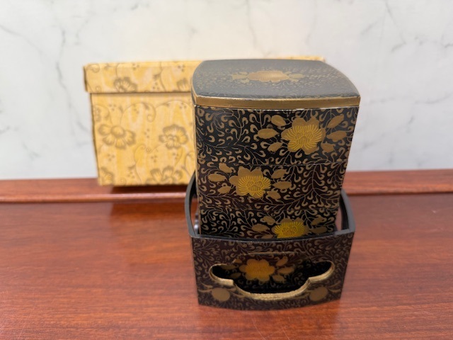 - 古い雛道具 ひな道具 梅印 蒔絵 角丸重箱 雛飾り