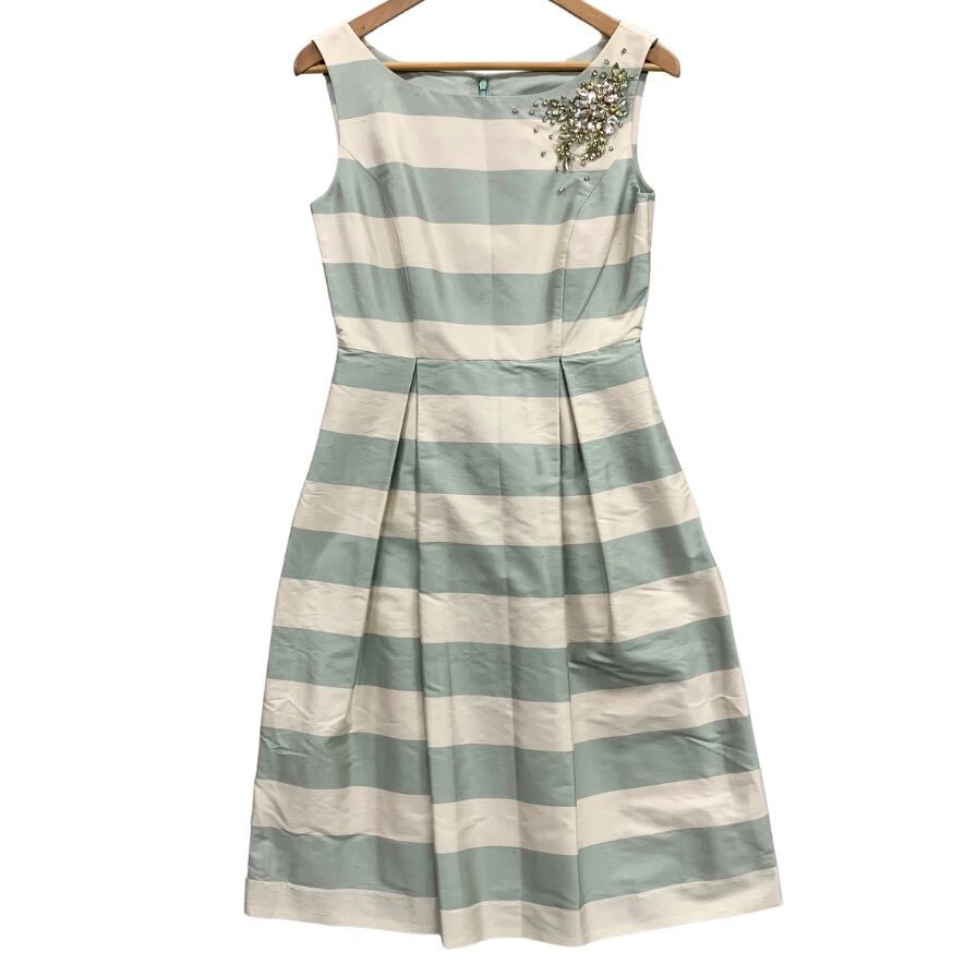 > 美品◆ワンピース グレースコンチネンタル ノースリーブワンピース ビジュー装飾 ボーダー レディース サイズ36 【AFB11】