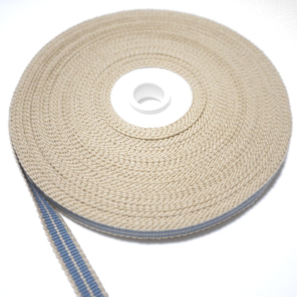 - 匿名発送★03-12-15)国内産 木綿 真田紐 綿100% 三分紐 平紐 水色×ベージュ 15m Samurai ribbon(Sanadahimo)