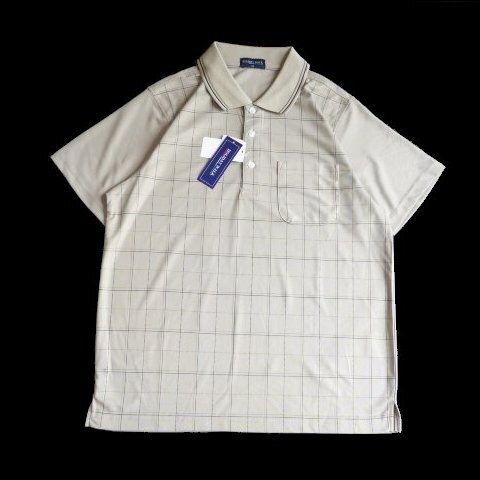 > 新品 HOLIDAY WALK ドライ DRY 半袖 ポロシャツ メンズ Mサイズ チェック 半袖シャツ 紳士 ベージュ