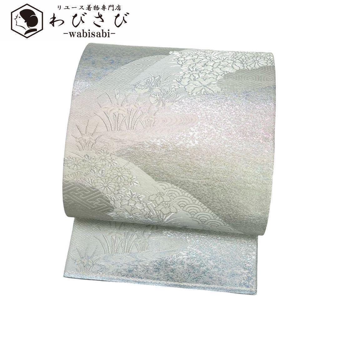 > 袋帯 上品な花模様 牡丹 菊 花菖蒲 流水 青海波 金銀糸 O-3823 着物 きもの kimono 和服 和装 中古 リサイクル着物 【送料無料】