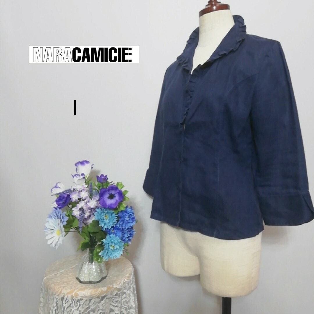 - 極上美品 ナラカミーチェ リネン麻100% 薄手ジャケット Мサイズ 紺系