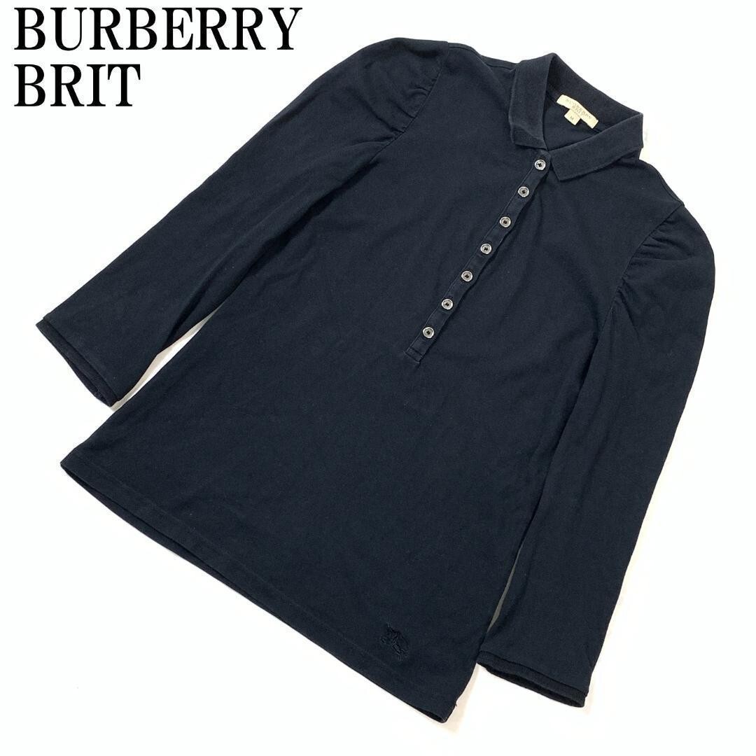 - LA6533 バーバリーブリット コットン 長袖ポロシャツ BURBERRY BRIT ワンポイントブランド刺 ギャザーアームブラック M
