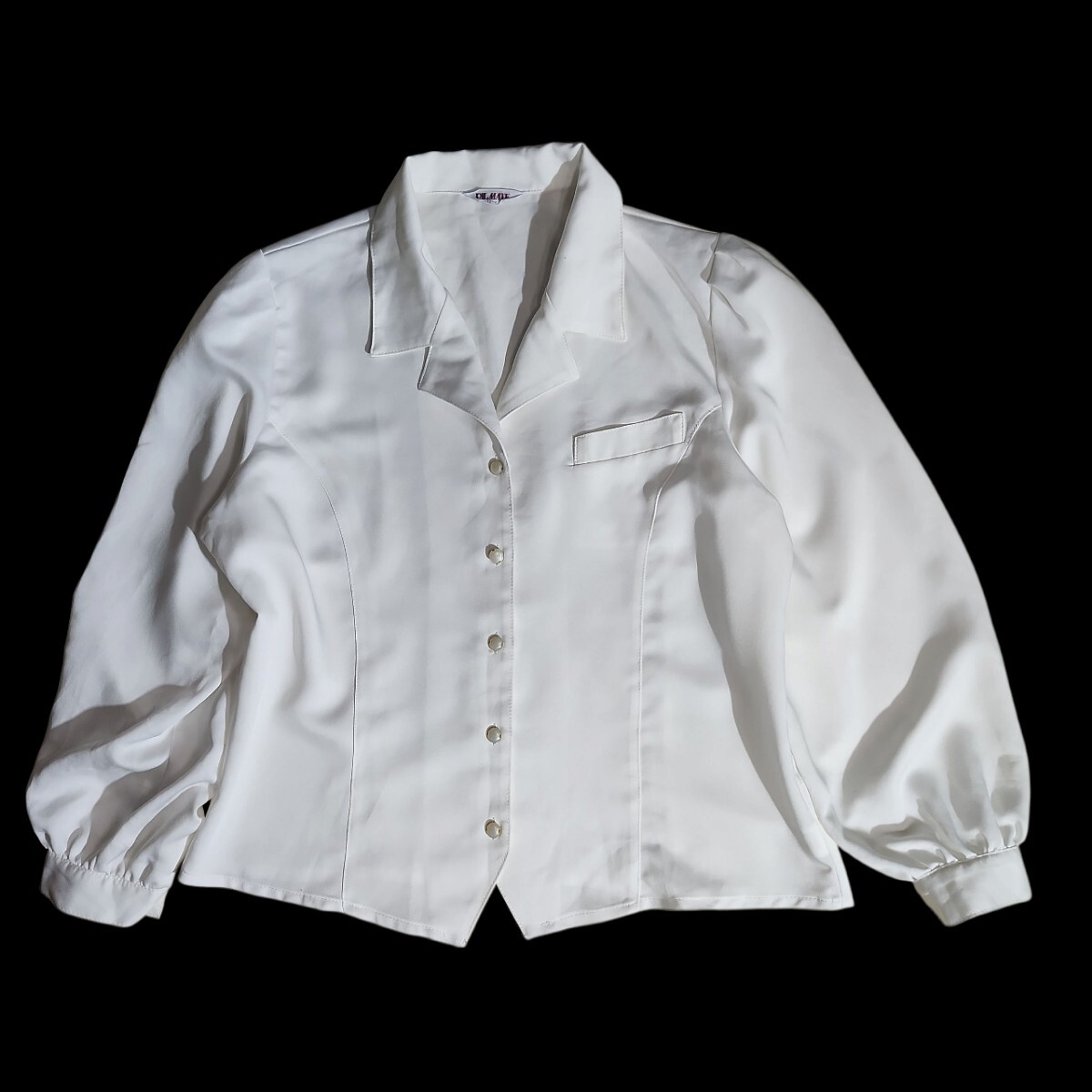 > PIL MATE ゆったりデザイン オープンカラー長袖ブラウス 表記13号 XL 白とオフホワイトの中間 大きいサイズ 肩先ギャザー 68845