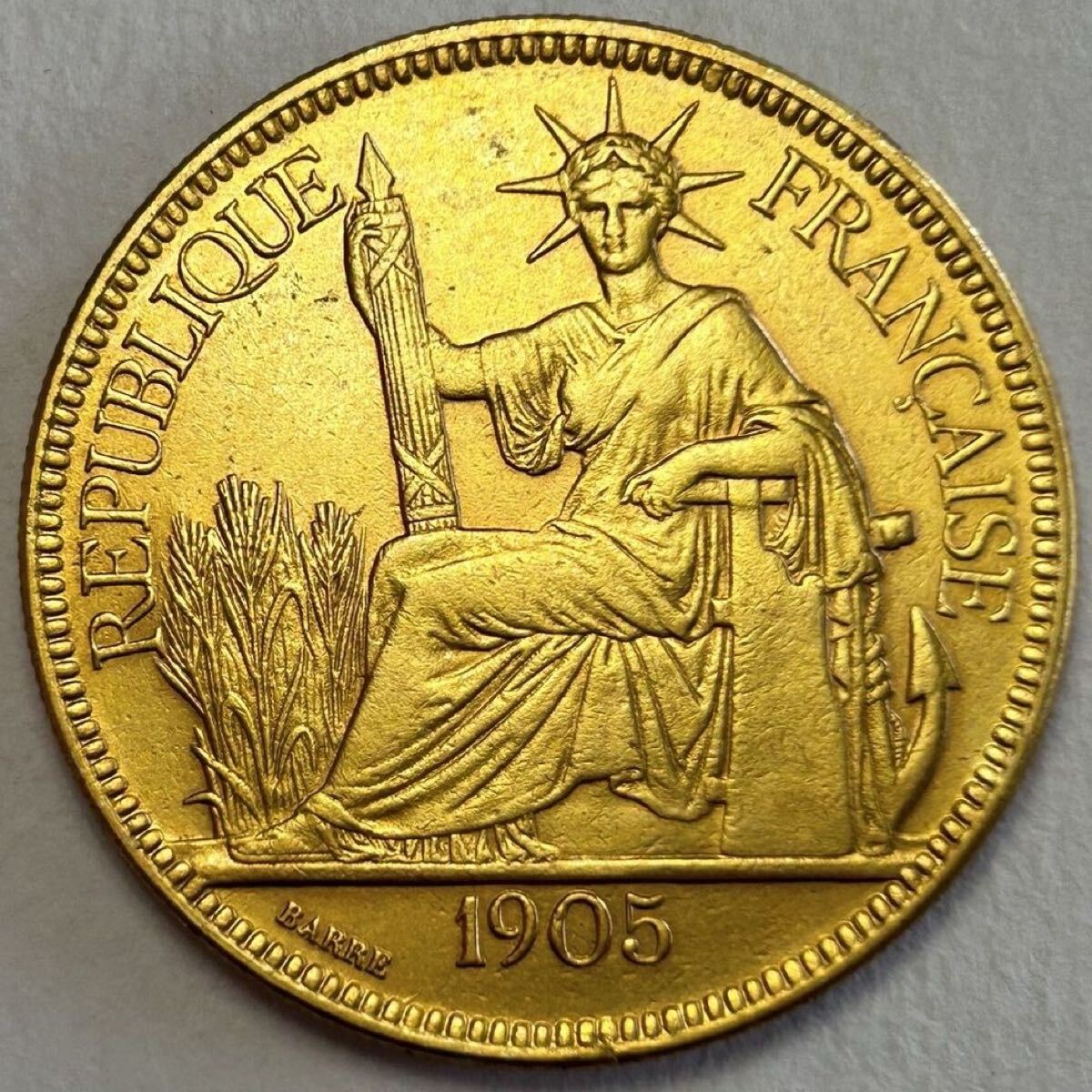 > フランス領インドシナ 1905年 ピアストル・ド・コマース レア品 Titre 0.900 Poids 27g A刻印 コイン 骨董品 貿易銀 古銭 コレクション
