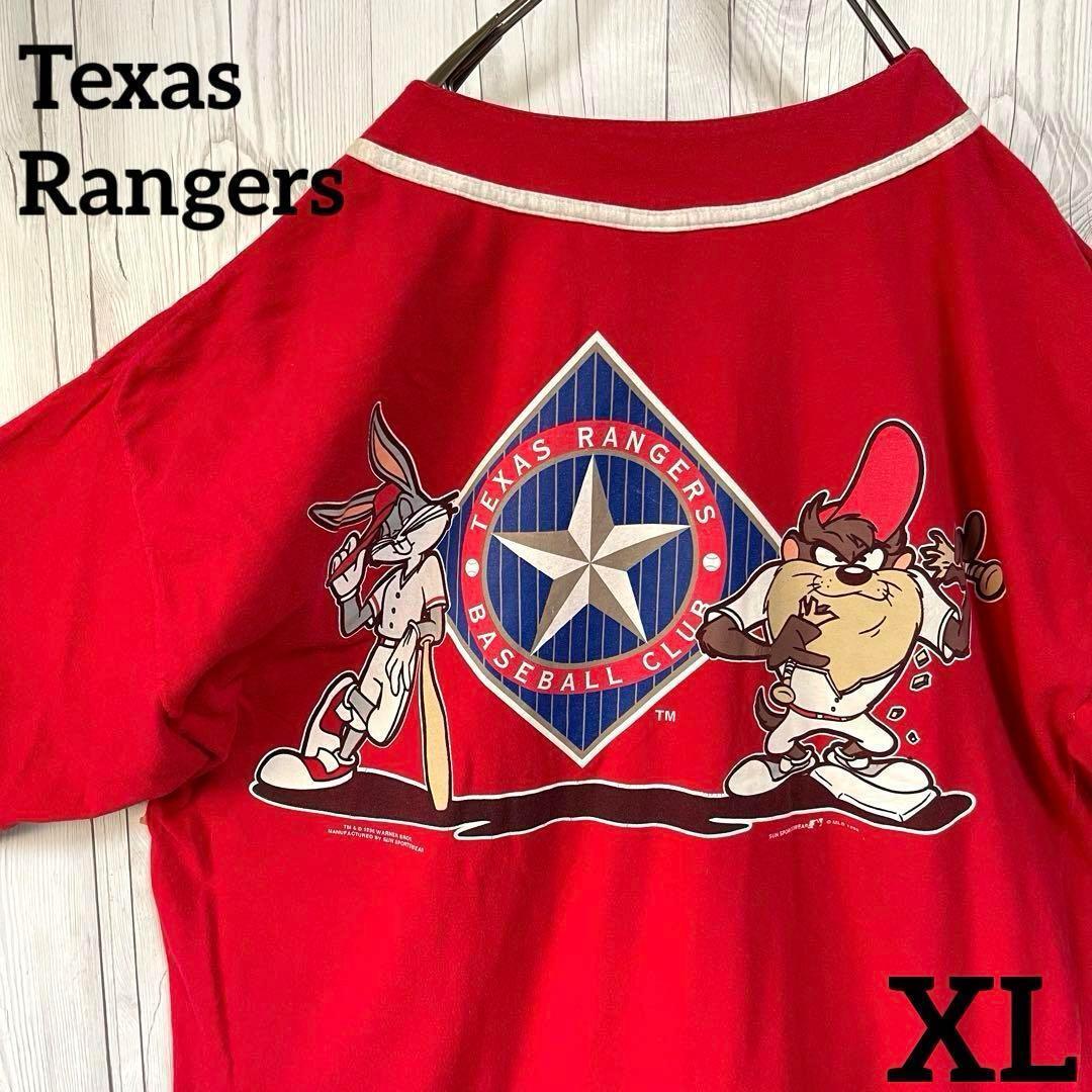 - MLBテキサスレンジャーズ ルーニーテューンズ ベースボールユニフォーム ボタン半袖シャツ XL USA野球メジャー アメキャラコラボ 赤