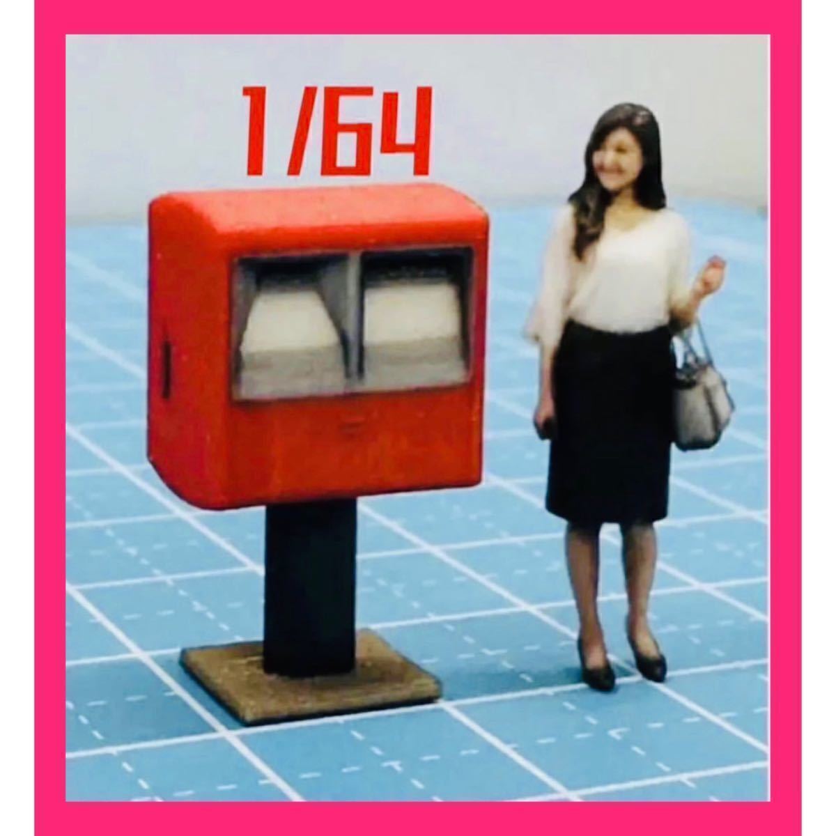 - 1/64★ミニチュア★ポスト★郵便ポスト2連★フィギュアに★ミニカーに★ジオラマに★ミニチュアイメージ★フルカラー3Dプリンタ