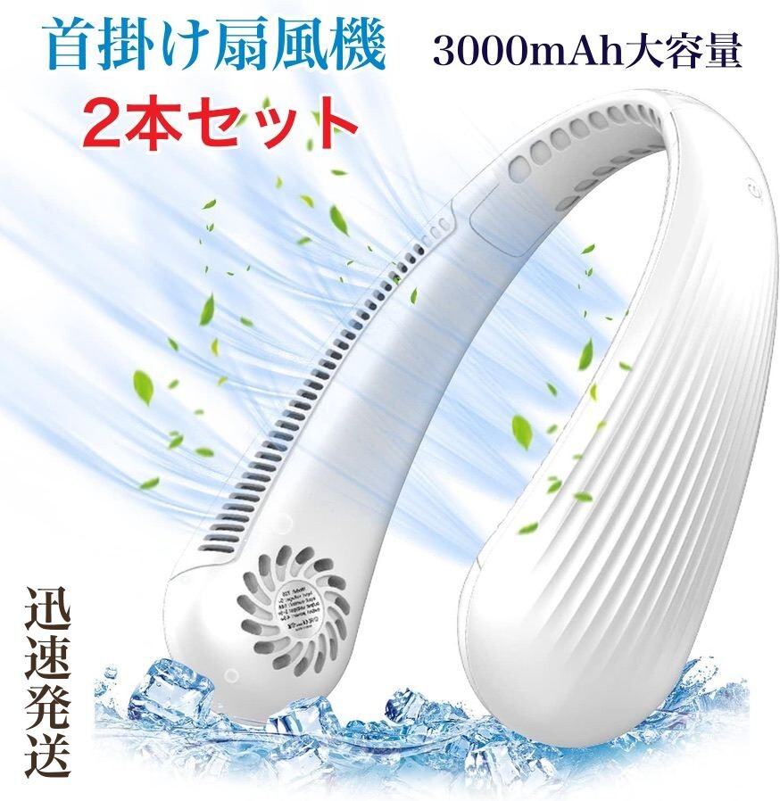 - 扇風機 ネッククーラー 携帯扇風機 首掛け扇風機 急速冷却 超長時間連続稼働 3段階自由調節 USB充電式 3000mAh 大容量 2本セット 超軽量