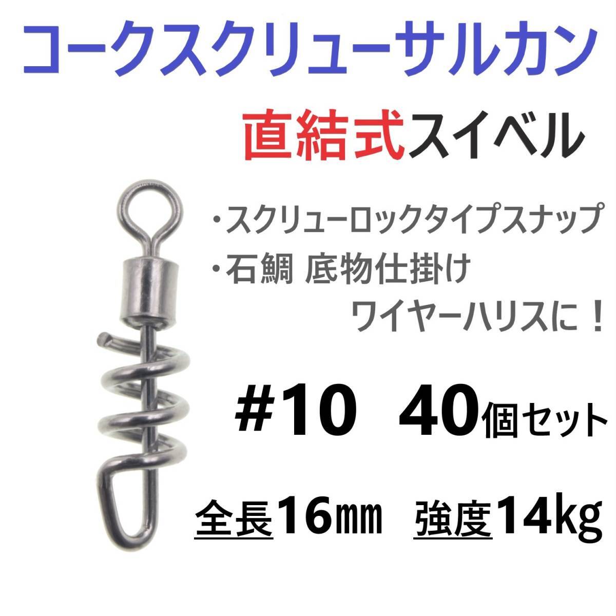 > 【送料150円】コークスクリューサルカン #10 40個セット 直結式 スイベル スクリューロック スナップ ラセンサルカン 石鯛 底物仕掛けに!