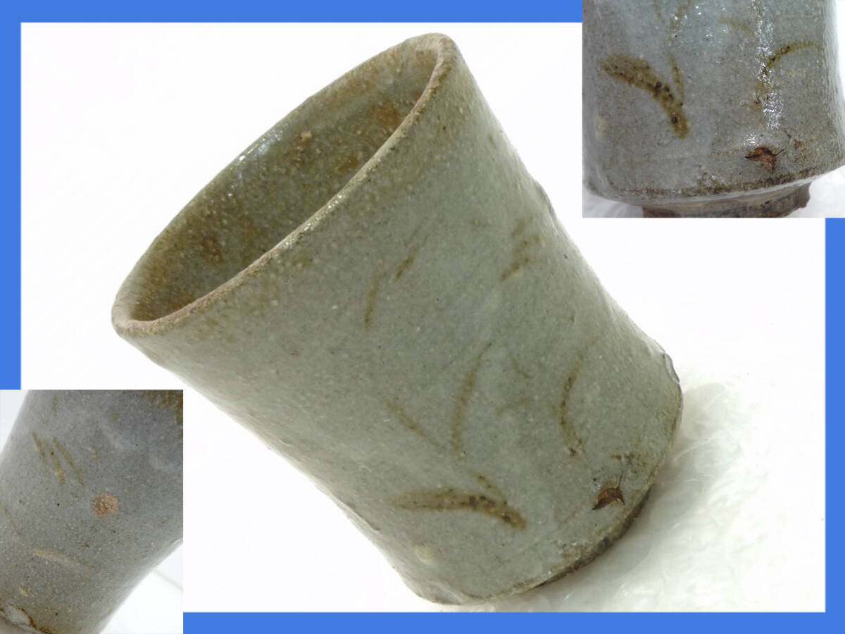 - 旧家蔵出 激レア 美術館級 古唐津 古絵唐津 湯呑み 湯飲 ぐい呑 煎茶碗 葦 草紋様 灰色上薬鉄釉草花文様 茶碗 優作 端正 逸品 骨董品時代_E