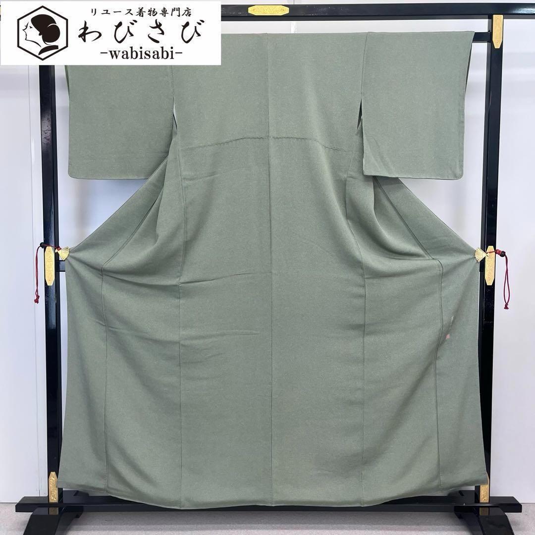 > 色無地 作家物 草木染 灰緑色 K-3982 着物 きもの kimono 和服 和装 中古 リサイクル着物 【送料無料】