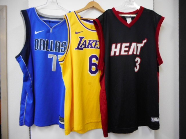 > 70 送60サ 0717YD09 NBA ゲームシャツ ユニフォーム 3着セット NIKW adidas DALLAS LAKERS HEAT サイズXXL,2XL XL 中古品