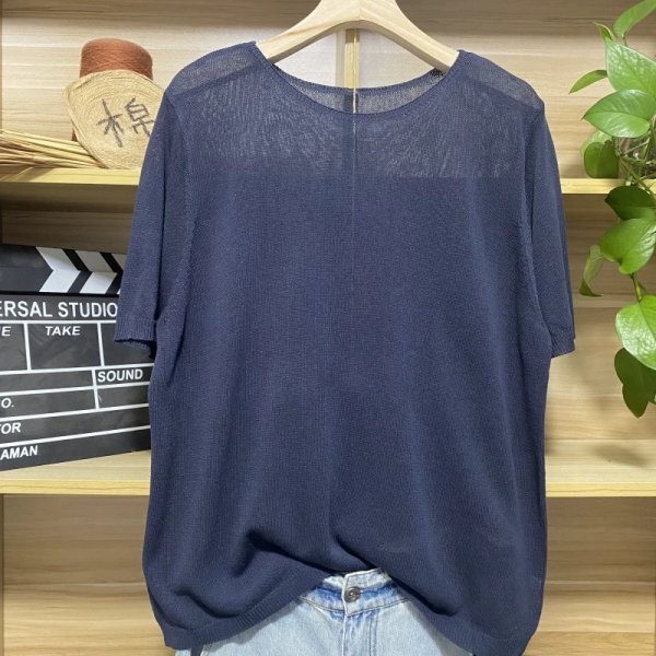 > 25zy サマーニット シンプル トップス 高質 ラフ 麻タッチニット チュニック ナチュラル 麻混 サラサラ 涼感 クールネック6
