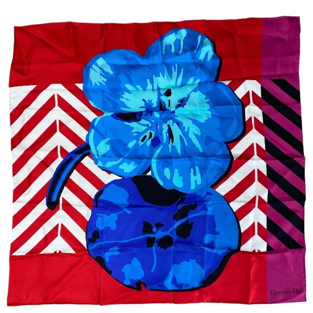 > 【未使用】Christian Dior クリスチャン ディオール 22FLP070I615 2022 フラワーポップ スカーフ シルク レッド ブルー ピンク
