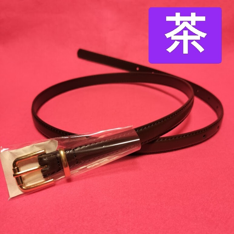 - 即決価格【消費税 送料すべて込み】新品 ビジネス&カジュアル細ベルト 茶【お洒落なステッチ縫いメタルループレディースレザー細ベルト】