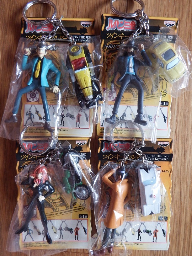 - バンプレストのプライズ品全4種◆モンキー・パンチさん原作「ルパン三世 ツインキーホルダー ルパンファミリーと愛車編」 未開封品です