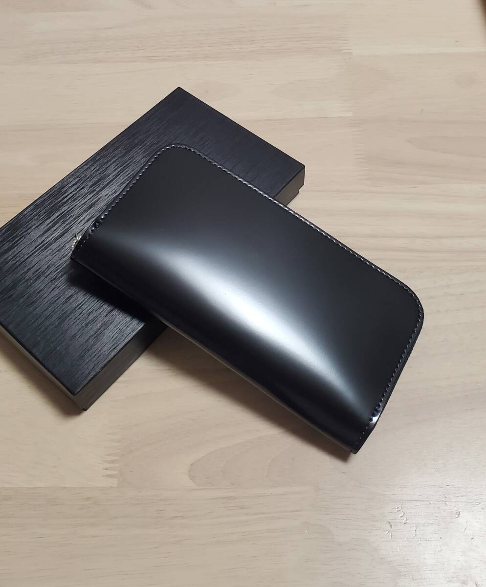 - 新品 未使用 美品 EL-DIABLO ラウンド長財布 ラウンドファスナー メンズ 本革 革 コードバン 栃木レザー 牛革 日本製 ブラック ブルー 黒