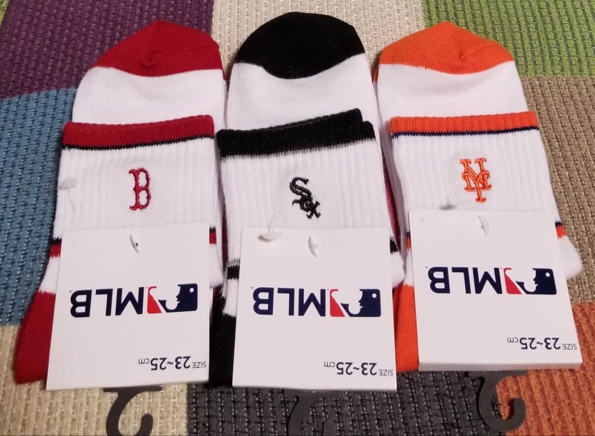 > MLB 23-25cm ソックス 靴下 3足セット 新品 ボストンレッドソックス シカゴホワイトソックス ニューヨークメッツ