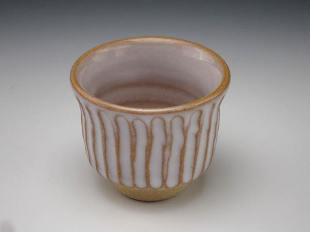 - 萩焼 8代岡田 裕 作 萩焼ぐい呑(鎬)