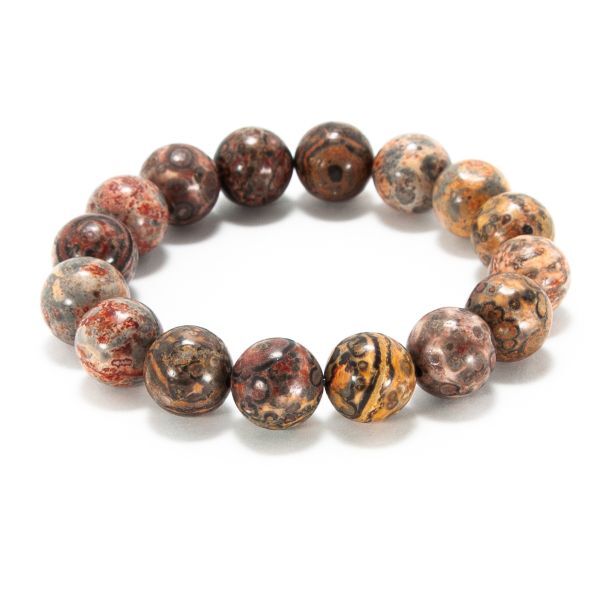 - レッド レオパード スキン ジャスパー ブレスレット赤豹紋様碧玉 12mm珠 16cm 未使用品