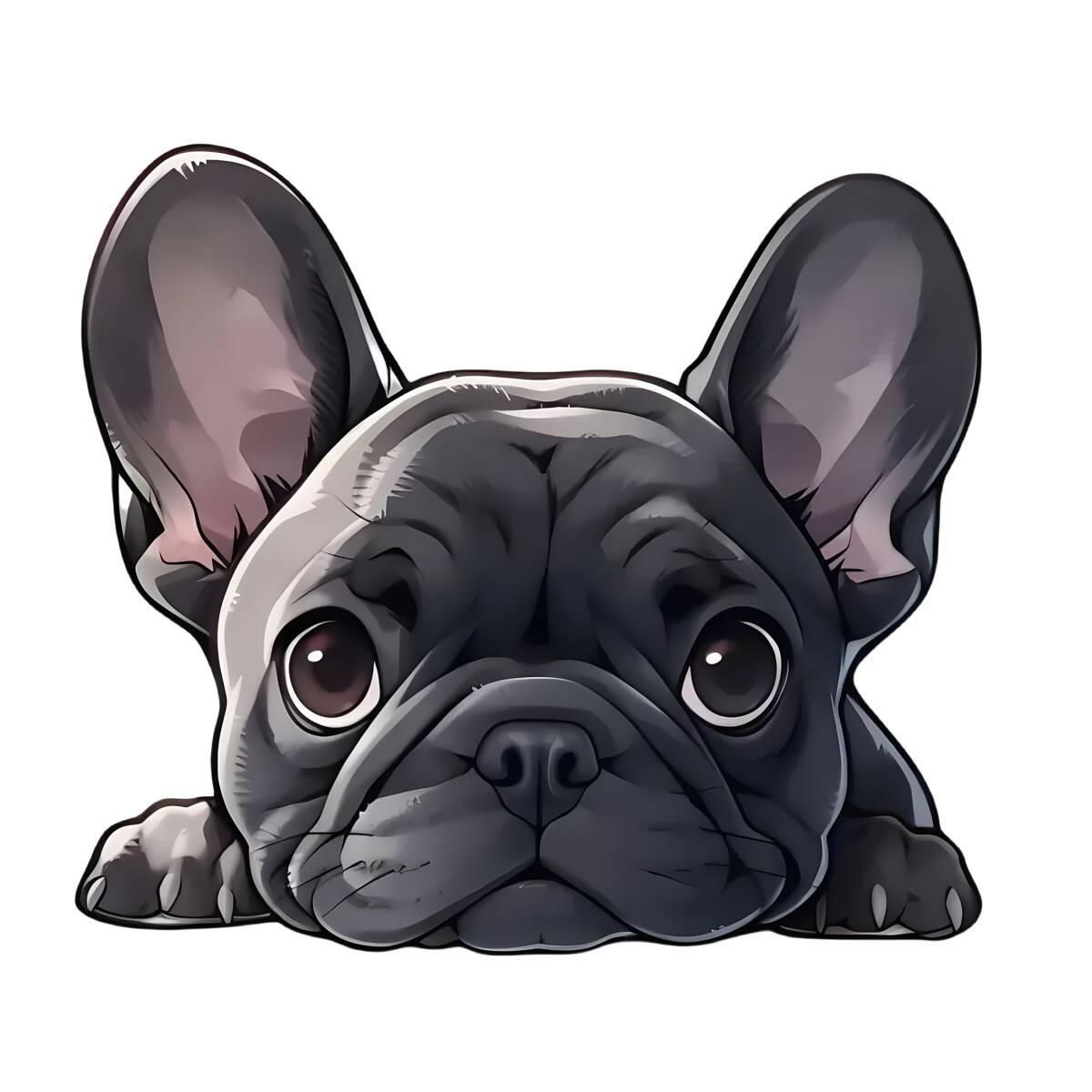 - ステッカー 顔を出す黒犬 パグ 15cm 防水 ビニール素材 インテリア 貼り付け シール いぬ 車用 窓用 イヌ かわいい ノートパソコン t7281