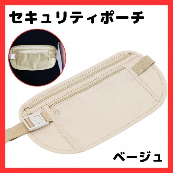 - 463 セキュリティポーチ ベージュ オフホワイト ウエストポーチ ボディバッグ 海外 旅行 修学旅行 防犯 パスポートケース 貴重品