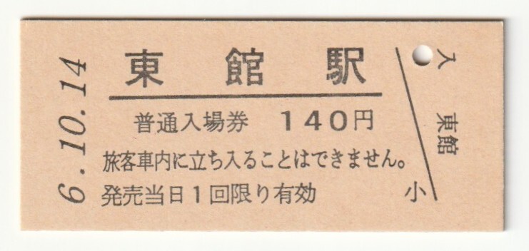 - 平成6年10月14日 水郡線 東館駅 140円硬券普通入場券(日付印刷)