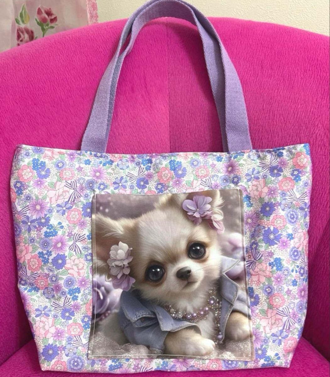 - チワワ柄バッグ ちわわ柄バッグ パネル生地バッグ チワワ柄 ちわわ柄 お弁当箱バッグ ランチバッグ