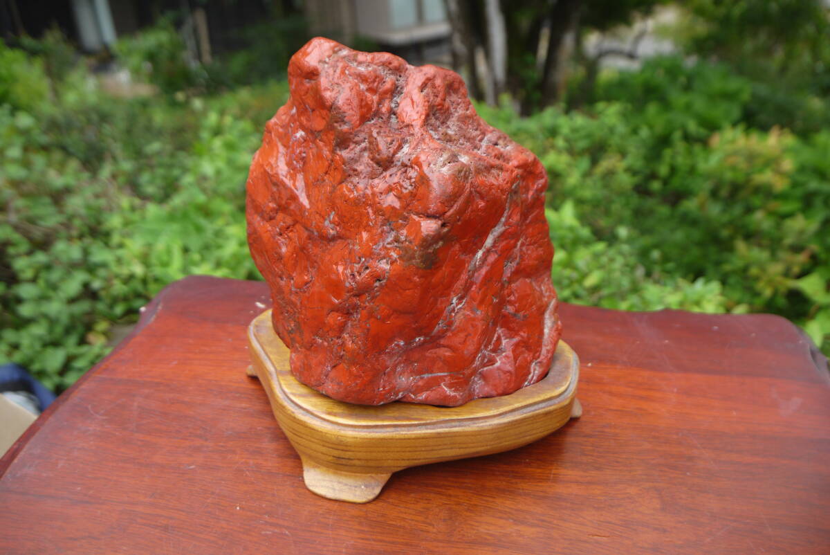 - ★【BO50712】水石 佐渡赤石? 赤玉石 鑑賞石 天然石 自然石 盆石 台座付 2.6kg