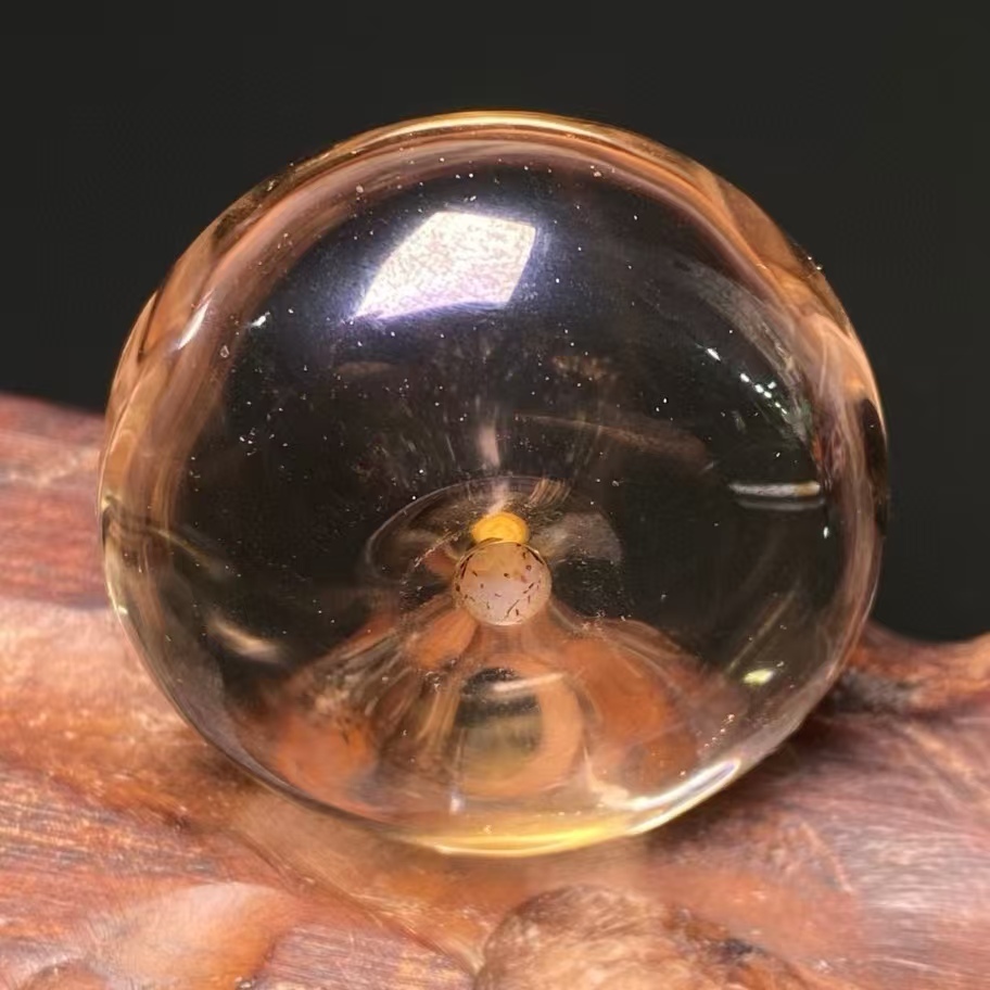 > 天珠 秘藏 清代 チベットの老天珠 高油老料 【 茶水晶平安ボタン 】 裝身具 骨董品 風水 開運 辟邪 吊墜 古賞物 包漿渾厚7.13
