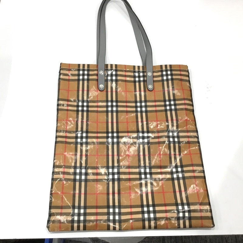 > バーバリーロンドン(BURBERRY LONDON)ビニールノバチェックトートバッグ マチ無し 持ち手のネジが1つ社外品です 【中古】 JA-20159