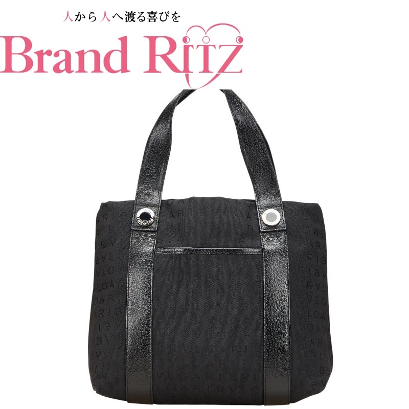 - 中古 ブルガリ ハンドバッグ トートバッグ ロゴマニア ABランク ブラック キャンバス レサー レディース BVLGARI 【送料無料】【西神店】