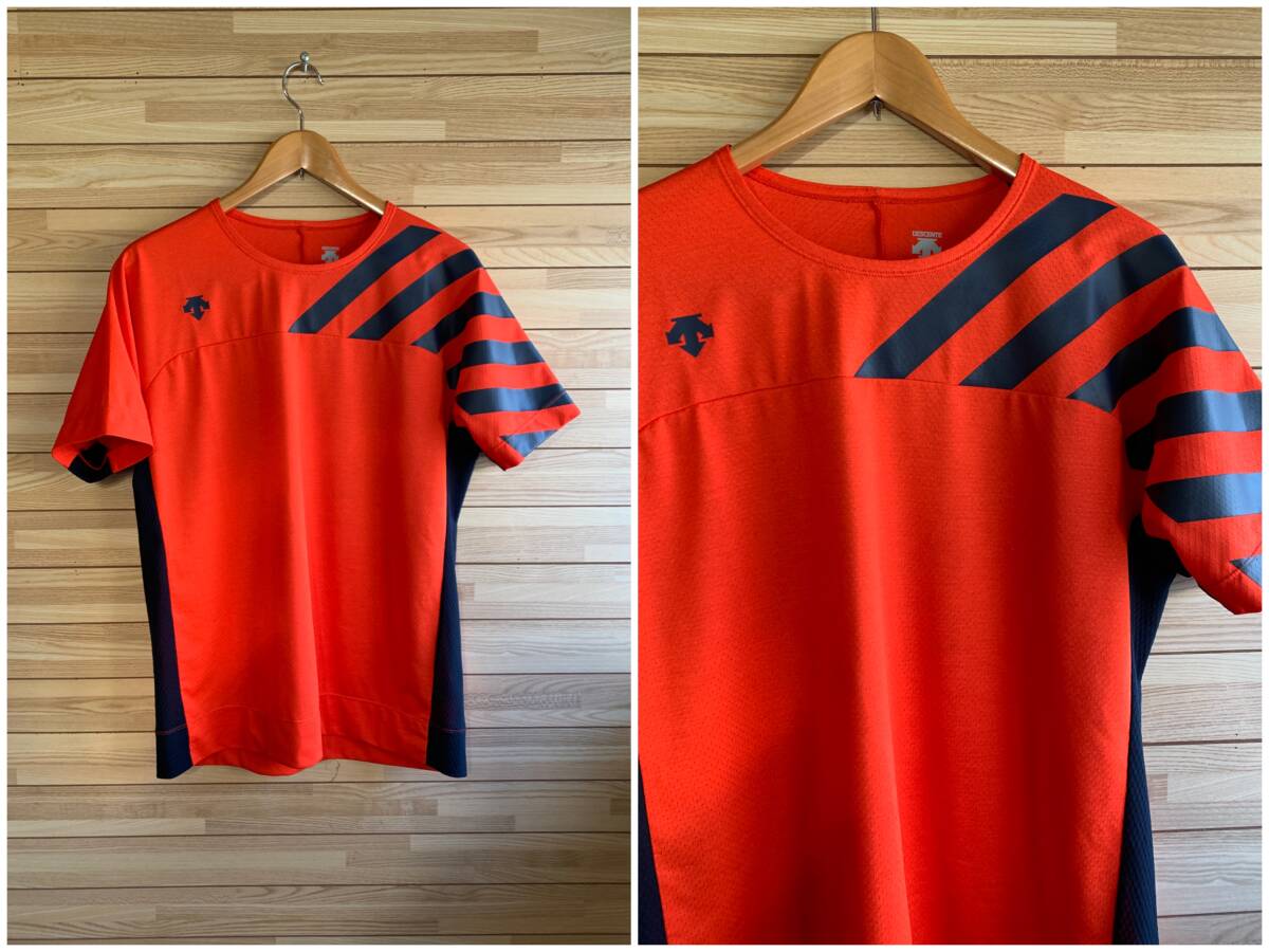- #セール★大きい サイズ O XL★DESCENTE デサント 高通気 吸汗速乾 半袖 シャツ Tシャツ レアカラー オレンジ スポーツウェア トレーニング