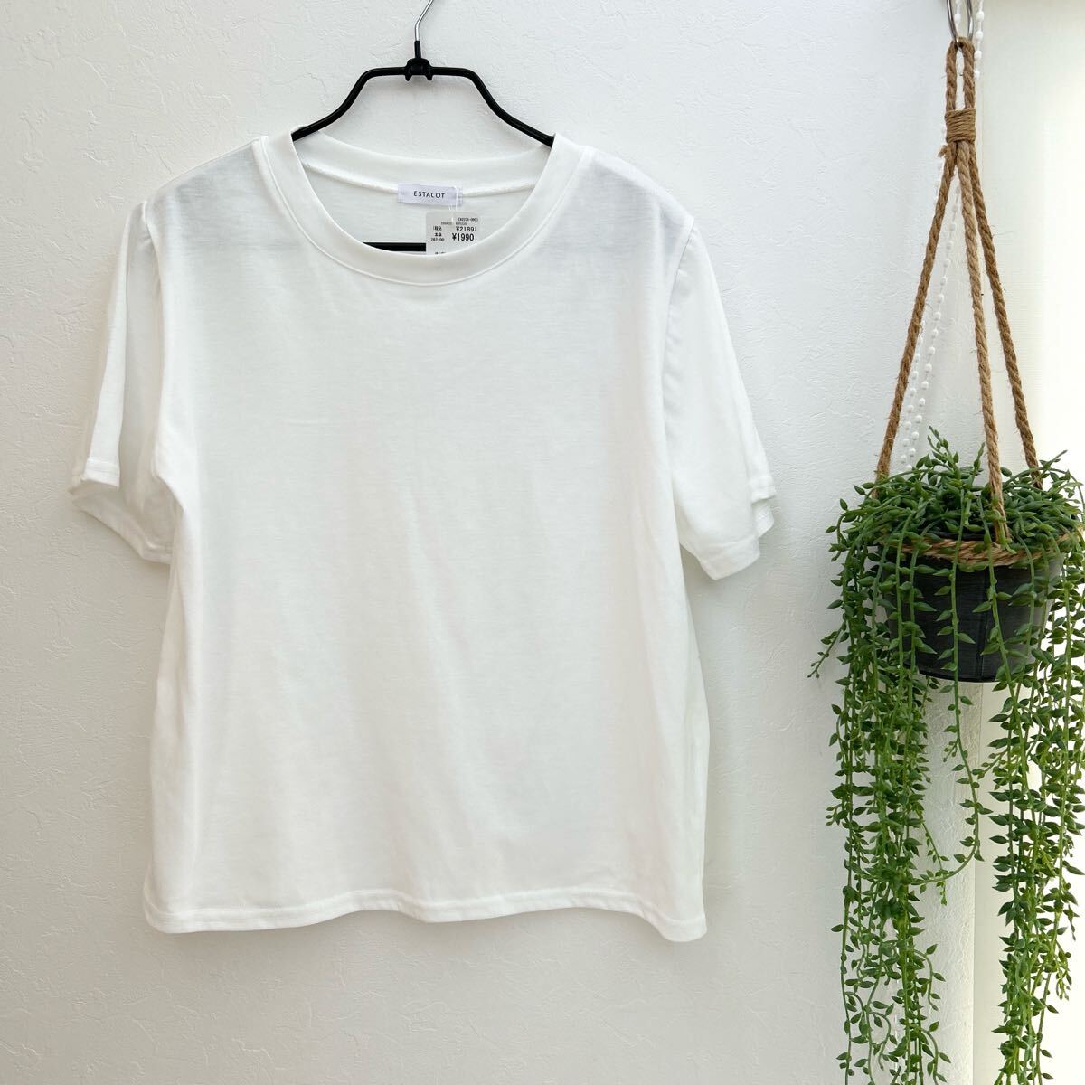 - ESTACOT シンプル ホワイト 半袖Tシャツ