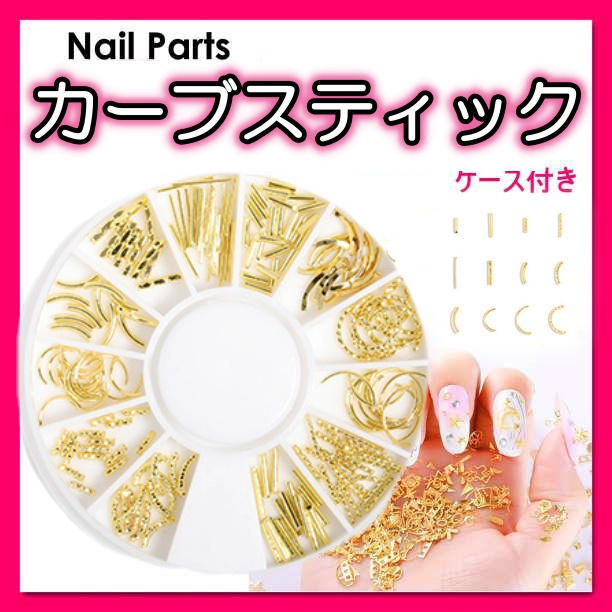 - ネイルパーツ カーブスティック デコパーツ ゴールド ケース付き ネイル カーブ