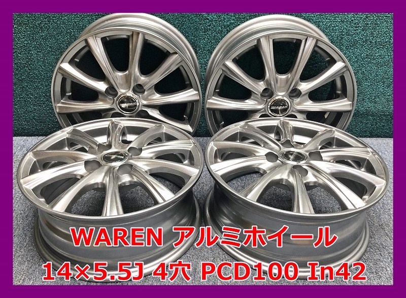 - ★14インチ WAREN 中古 社外 アルミホイール 4本 4穴 PCD:100 IN42★