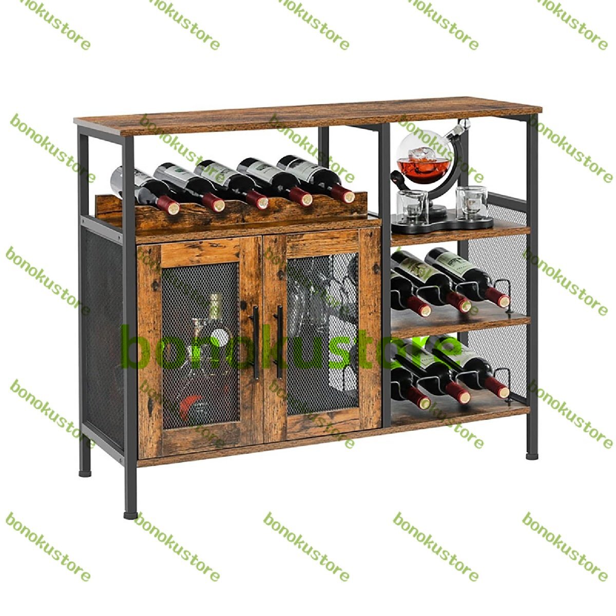 - ワインラック 酒棚 ワインバーラックキャビネット メッシュドア付き工業用ワインキャビネット ウイスキー 収納 酒ラック ウイスキー棚