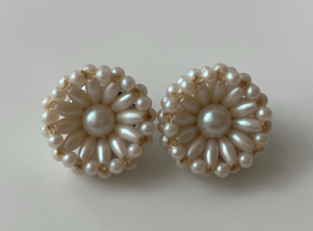 - ヴィンテージ ** パール お花モチーフの素敵なイヤリング vintage earrings USA