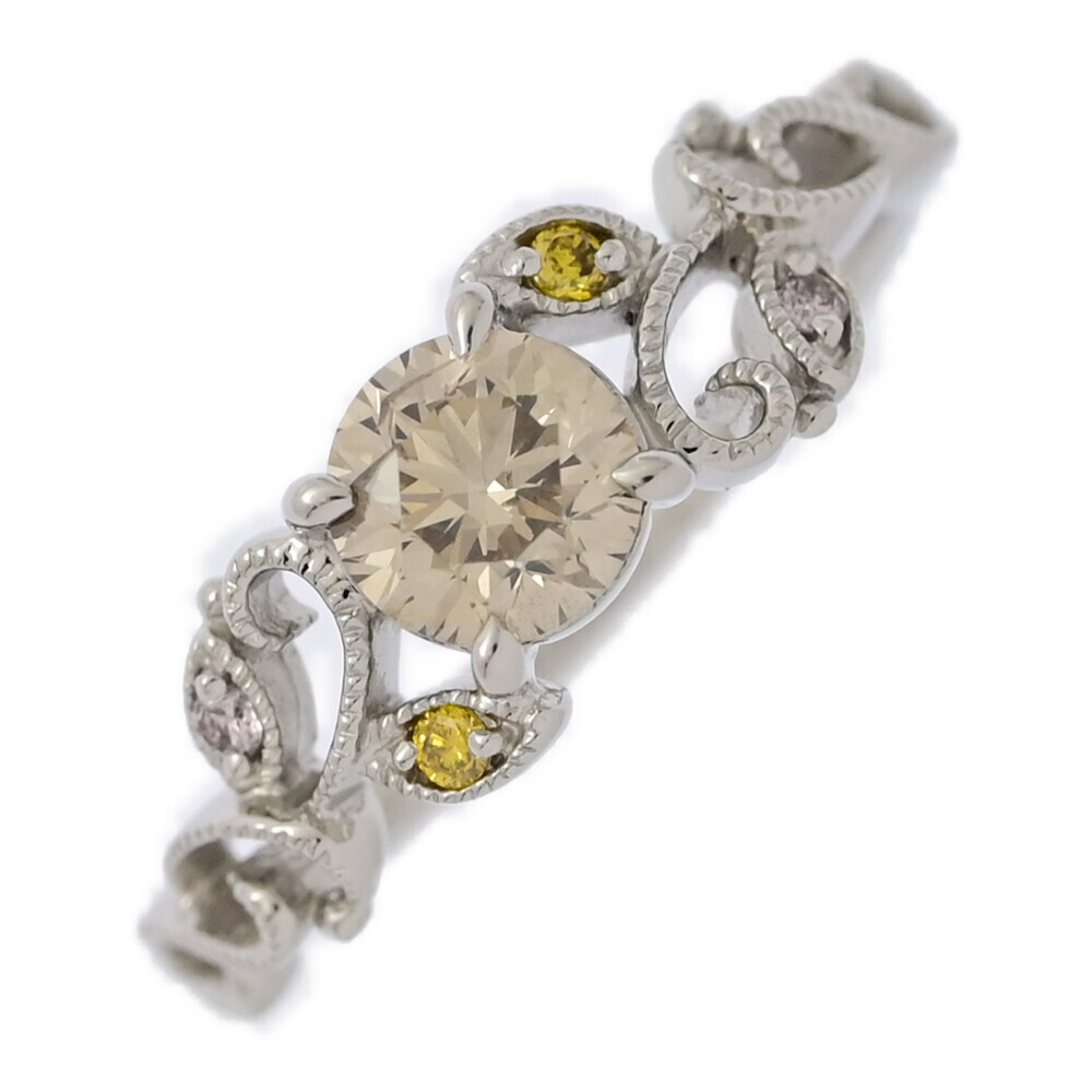 > 0.59ct/FD:0.04ct/ピンク イエローダイヤモンド・ブラウンダイヤモンド リング・指輪/Pt900-3.6g/12号/#52/プラチナ/リーフ■582908