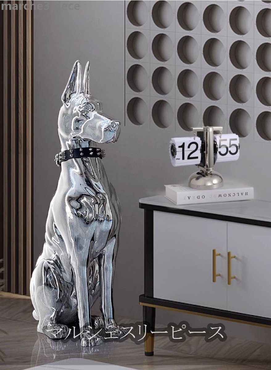 - 大型 モダンで洗練された レジン製メッキ犬オブジェ インテリア雑貨 高級感フロアスタンド
