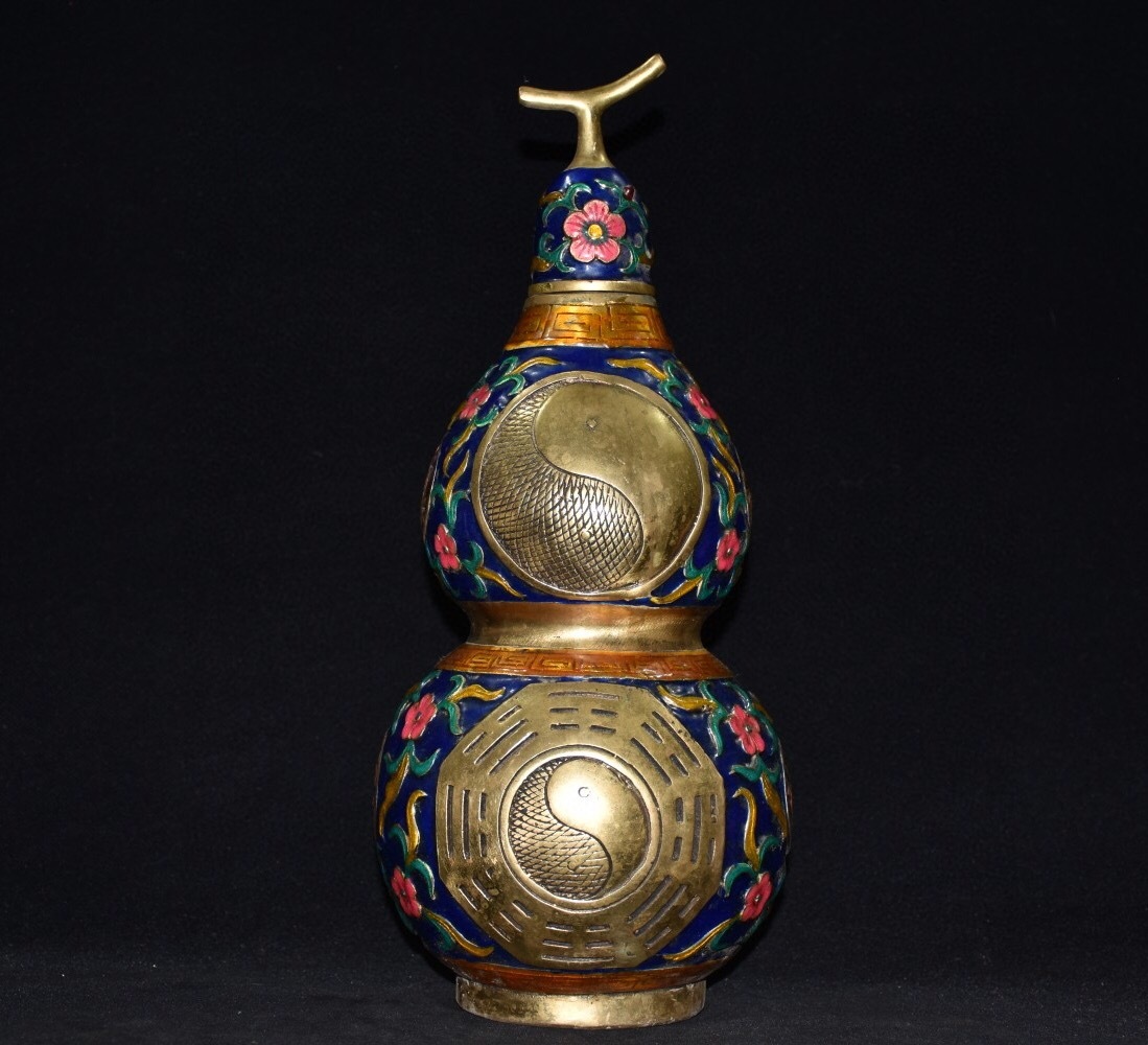 - ▽鴻▽ 銅製 景泰藍 琺瑯彩 八卦ひょうたん 置物 賞物 古賞物 古董品 時代物 稀少珍品 中国古玩 中国古美術
