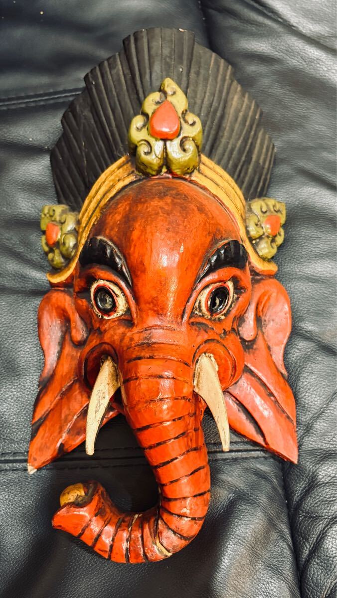 - ガネーシャ 壁掛け面 ヒンドゥー教の神 学問の神 商業の神 除災厄除 財運向上 アンティーク インテリア 壁掛け お面 木製 レトロ 木彫り