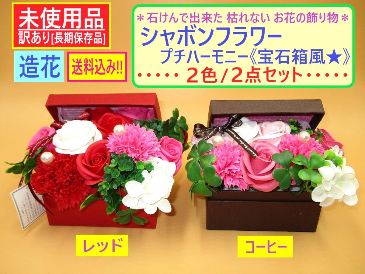 > 訳あり 未使用 宝石箱 風 シャボン フラワー プチハーモニー 2色セット レッド コーヒー 枯れない 石鹸 造 花 ソープ ギフト 赤 茶 海外製