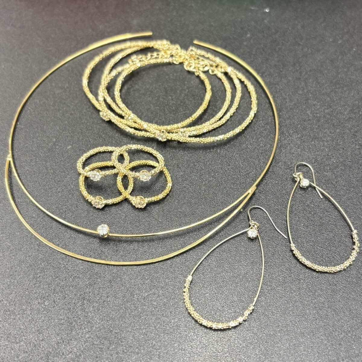 > ☆未使用 完成品 キュービックジルコニア 人口ダイヤ チョーカー ブレスレット バングル リング 指輪 ゴールド色 チャトン ルース S-311