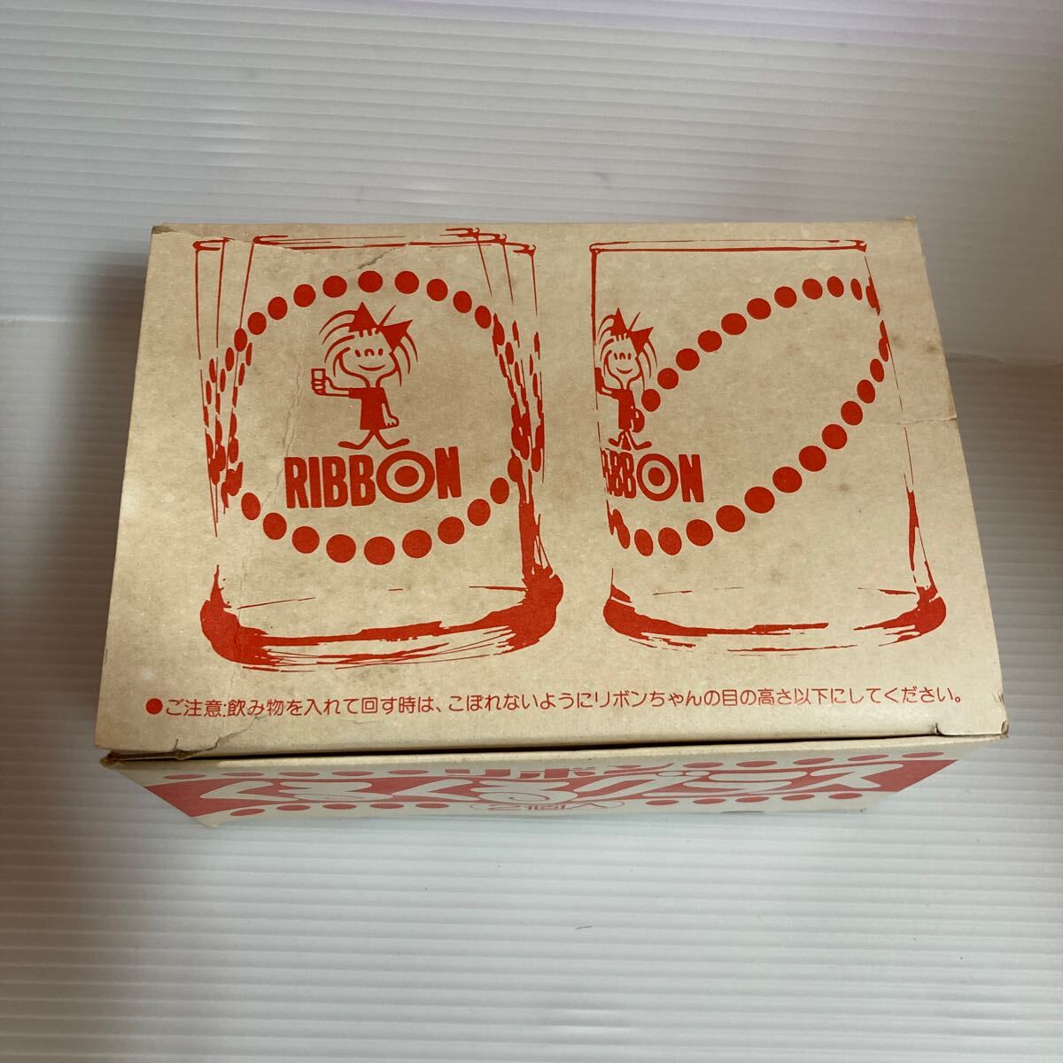 - n 5678 未使用・箱付き!★昭和レトロ★サッポロビール(株)「リボンシトロン くるくるグラス リボンちゃん 赤×緑2個セット