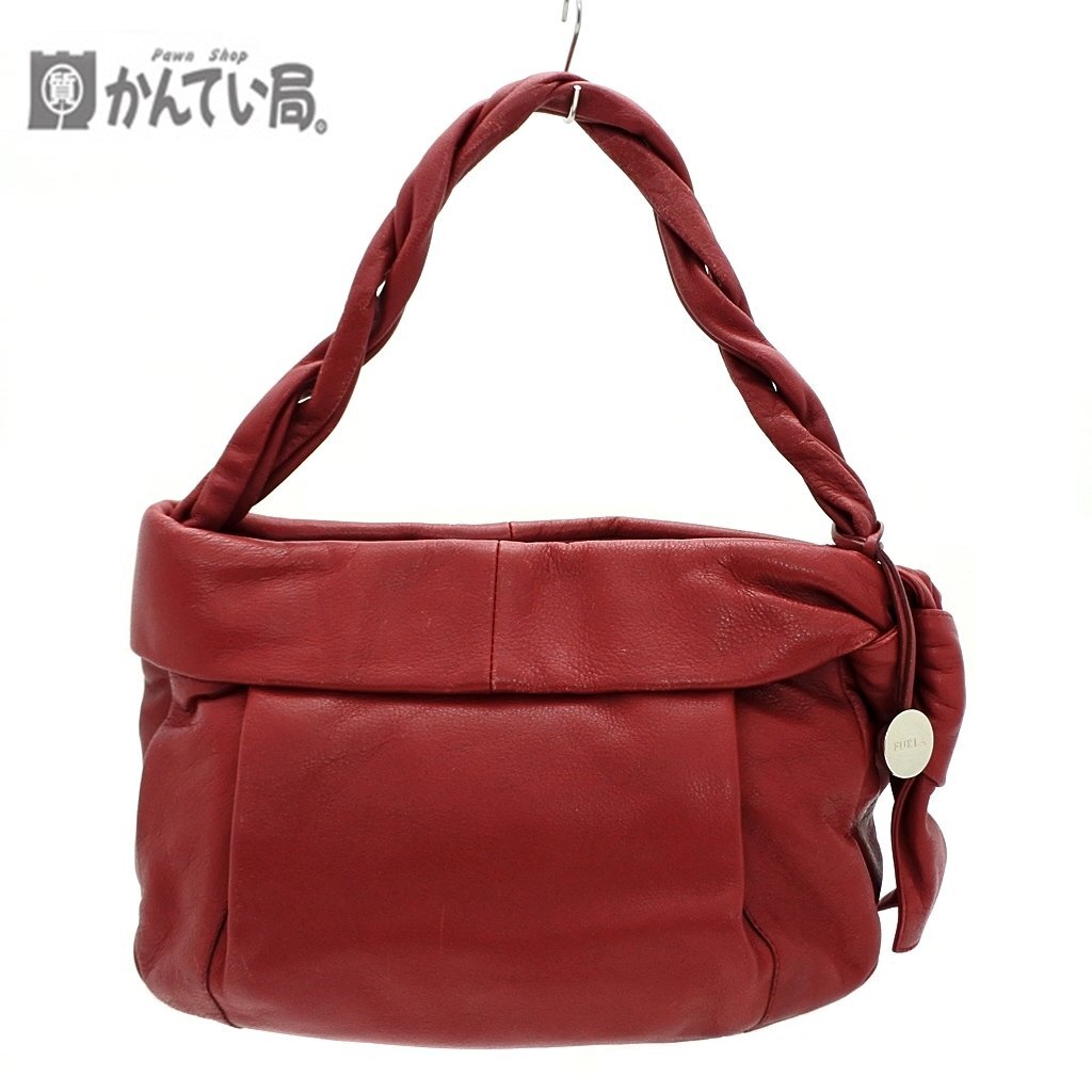 - FURLA フルラ レッド 赤 ワンショルダーバッグ マチ有り レディース 大人 チャーム付き マグネットホック開閉式 肩掛け 日常使い オシャレ