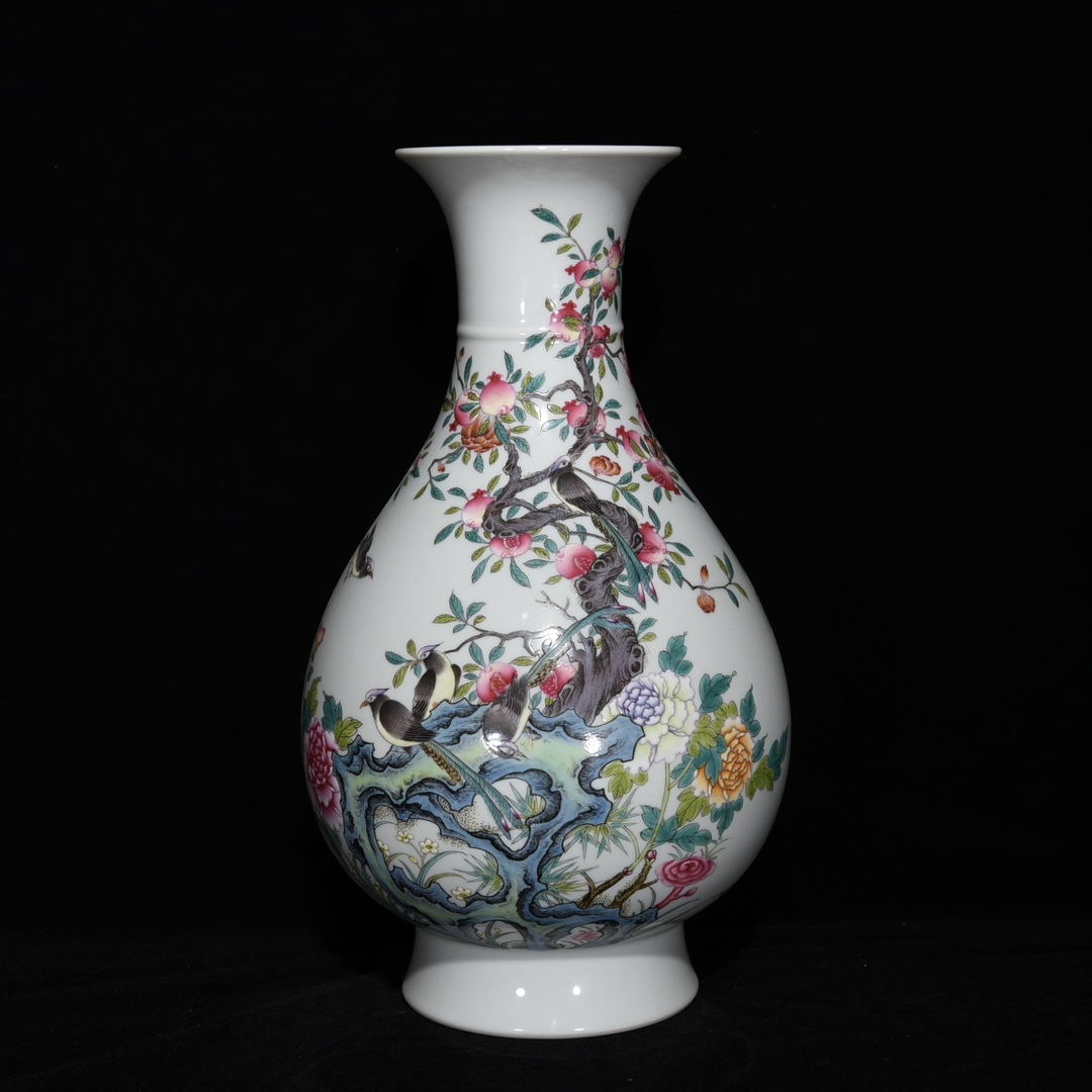 - ■LH168■大清乾隆年製款 粉彩花鳥多子多福紋玉壺春瓶 古玩 唐物 古陶磁器 珍蔵希品■