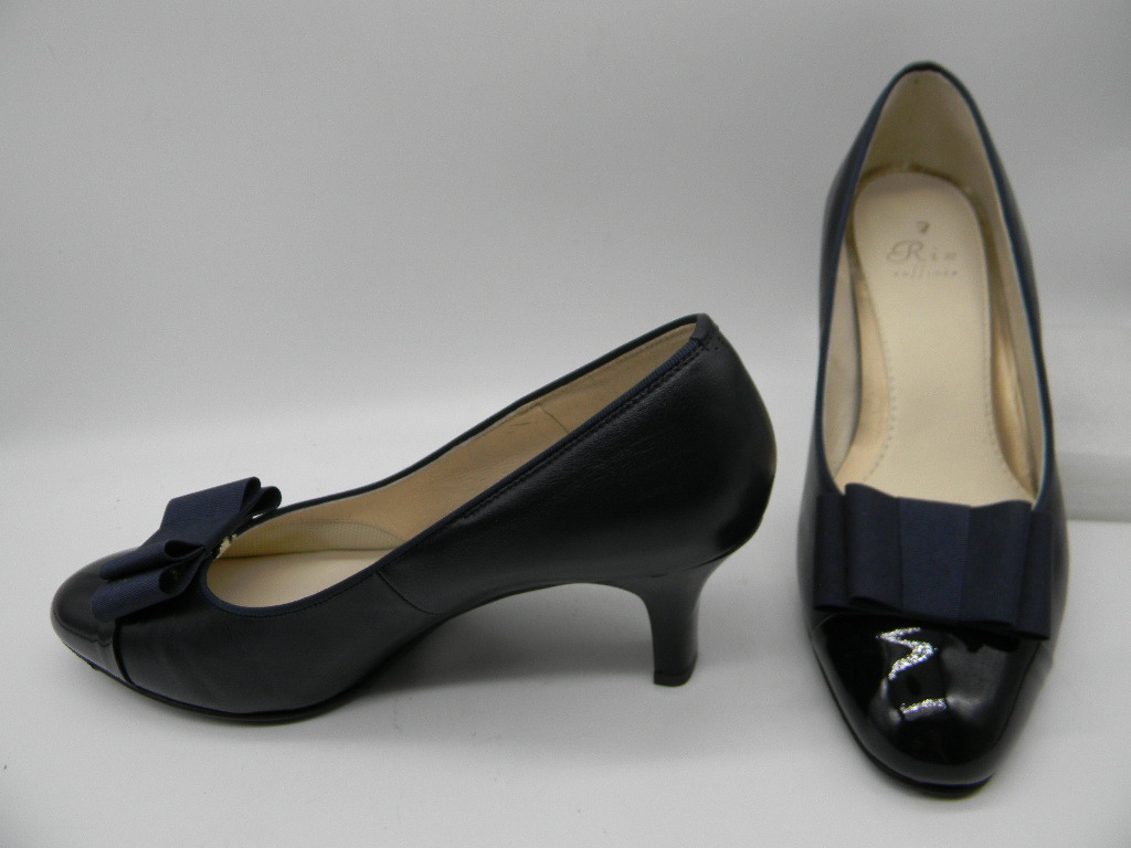 - ◆♪【 Riz raffinee 】★ 革パンプス(24cm位)表示=24.5cm 濃紺 ネイビー × 黒 リズ